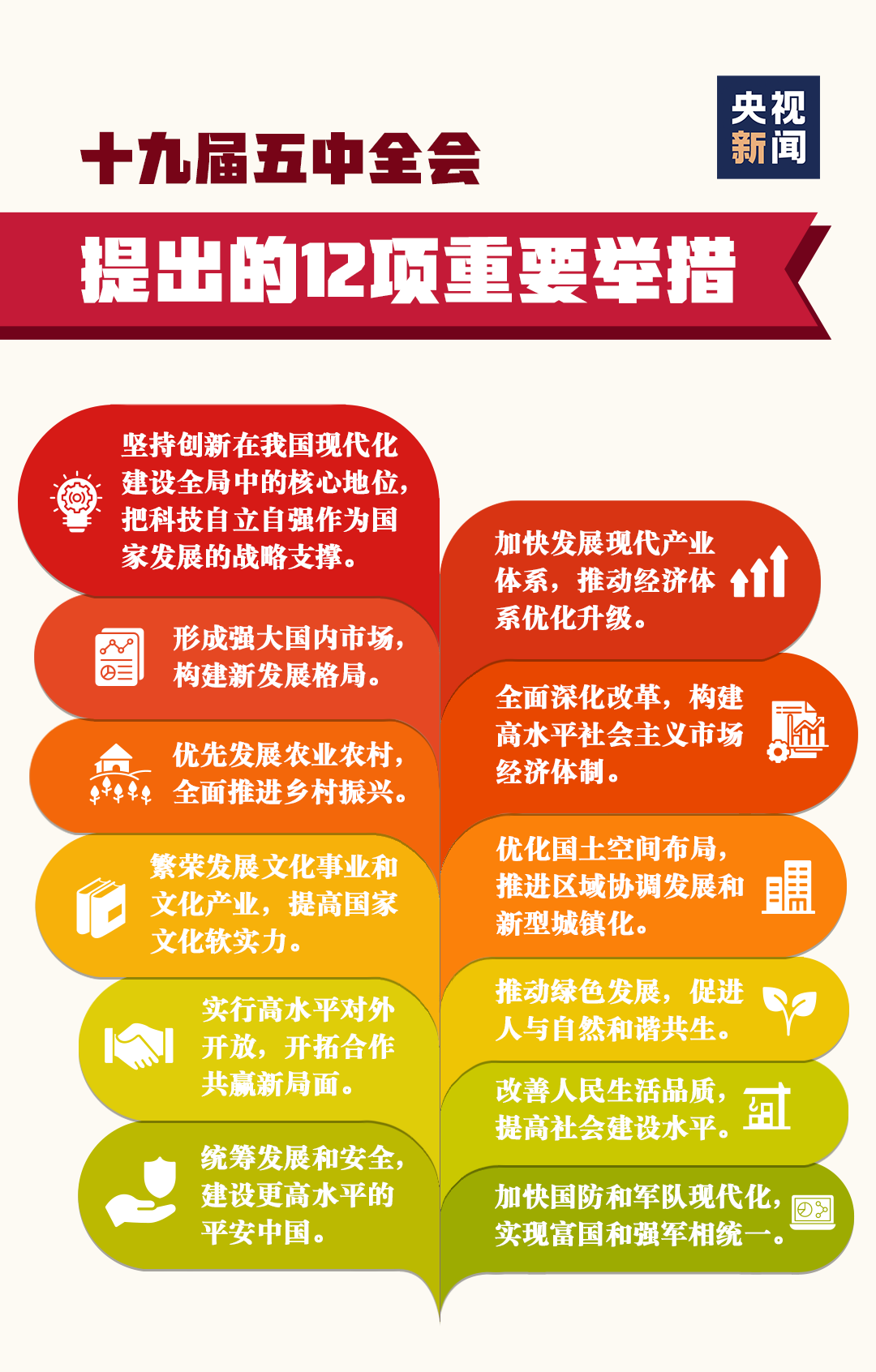 中国共产党第十九届中央委员会第五次全体会议,于2020年10月26日至29日在北京举行。全会听取和讨论了习近平受中央政治局委托作的工作报告,审议通过了《中共中央关于制定国民经济和社会发展第十四个五年规划和二〇三五年远景目标的建议》。